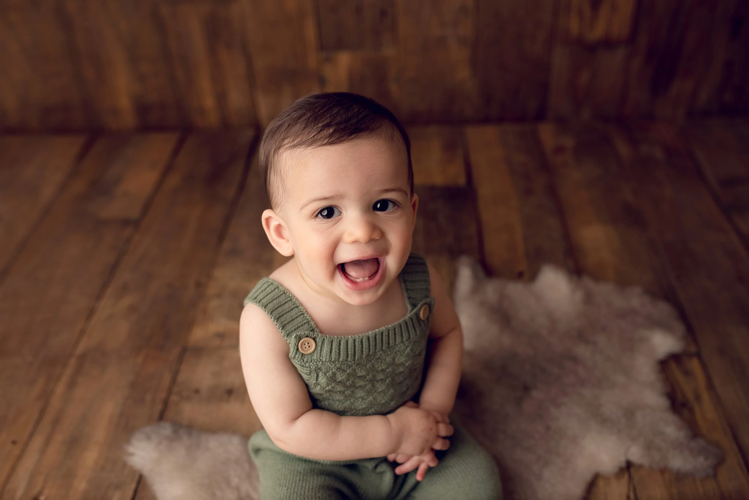 All baby milestone sessions are baby focused. I will photograph baby in diaper cover/naked baby, our studio outfit, and an outfit provided by the parents. I can add bubbles, our wooden toys or you can bring along a family heirloom (wooden toys, quilt, etc) to be photographed. We will let your baby play and have fun while I capture all those smiles, playing, crawling, standing, as well as little details like the curl in their hair, the rolls in their thighs, and those cubby little toes.
