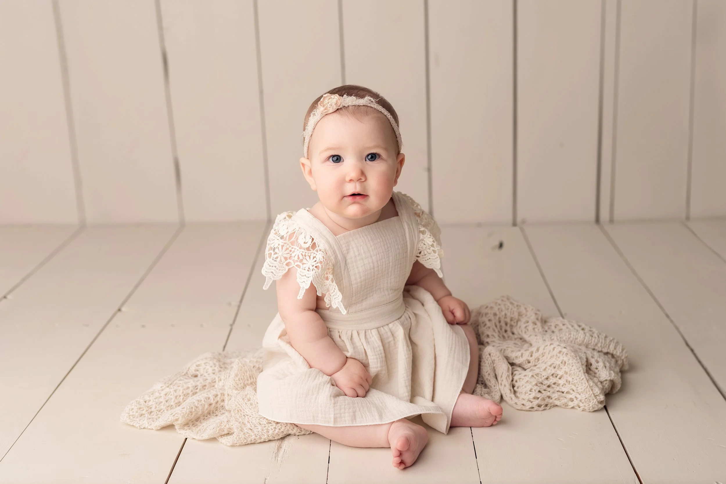 Every baby is different, but I have found that a 30-45 minutes is the perfect time for a successful milestone session. However, we will have plenty of time if we need to shoot longer. Baby’s tend to have a short attention span and I have found that they tend to become uninterested in the session after around 30 minutes. That means I move pretty quickly through to capture all of their unique expressions.